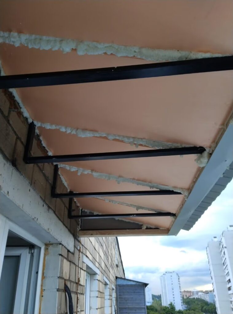 Сам монтаж крыши над балконом занимает всего лишь 1 день. Ещё 2-3 дня нужны для того, чтобы изготовить металлический каркас под крышу.